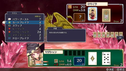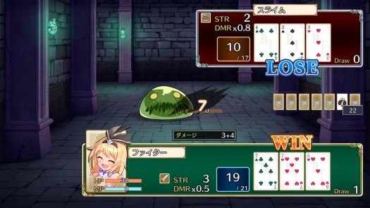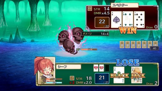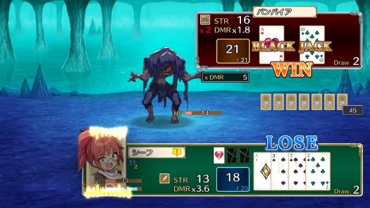 戦闘は1ターン毎にブラックジャックで勝負して、勝った方がダメージを与えられるのですが、