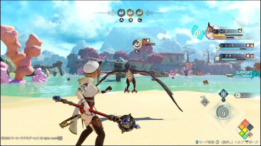 しかしこれが結構忙しく、敵からの攻撃をガードしつつ、キャラを切り替えて攻撃しながらスキル技や道具を使う為のポイントを稼いで使い、仲間からの要請も叶えて追撃してもらって、大技ゲージが溜まったらぶっぱなし…といった感じなので、操作が複雑なのも相まって慣れるまであたふたしました。(・∀・)