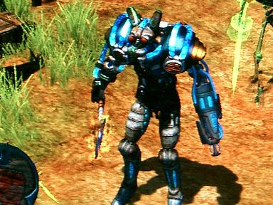 んで最初は細くてひょろひょろして人工筋肉むき出しだった我がロボットなのですが、色々防具をつけていくとSF系アメフト選手になりました。