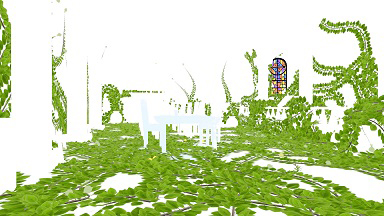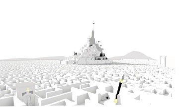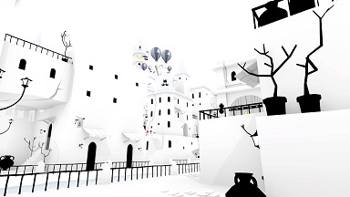 最初は影もない真っ白な世界で、黒色の絵の具?のボールを撃って色をつけ、地形を確認しながら進みます。