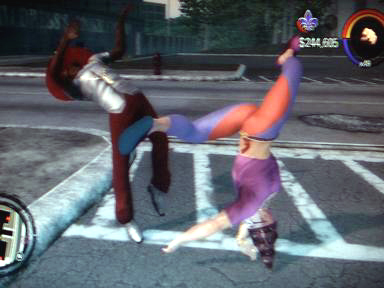 メインは他のギャングと抗争を繰り広げることですが、クリアすると色々な特典があるミニゲームにぶっとんだ奴が多く、わざと車にぶつかって保険金詐欺をするゲームや、汚水処理の車を操作して建物・車・人に汚水(ウンチ)をぶっかけて金を稼ぐゲームや、バギーに乗ってレースしつつ、火炎瓶を投げまくるゲームなどウィッヒイイイイイ!!!(・∀・) とテンションが上がるゲームばかりです。