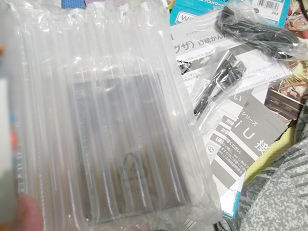 ↑ あまり見ない極太エアパッキンに包まれるちっちゃHDD。