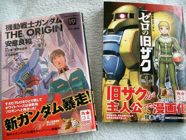 「機動戦士ガンダム ジ・オリジン 19巻」と「ゼロの旧ザク 1巻」。