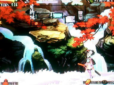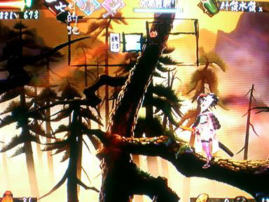で、ボタン連打の連続斬り、タメた後で放つ回転斬り、三角飛びの様な軌道で斬れる連続空中斬り、刀を切り替えた時に出せるシューティングゲームのボム的な位置づけの全体攻撃の居合斬り、刀独自の必殺技と攻撃方法は盛りだくさん。