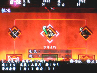 刀はボスから手に入れたり、レベルが上がれば系統図に沿って次々作れるようになります。3本まで帯刀可能。