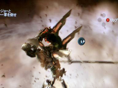 綺麗なお空でロボ兵士の背中に飛び移りながら羽を引きちぎっていくシーンなのですが。