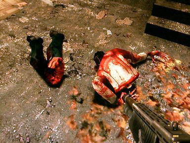 草刈り機の刃みたいなもんを飛ばすとゾンビの体が真っ二つになったり、プロパンガスみたいなもんをゾンビにぶち当てるとしばらく燃え続けて「ぐべらぁごばぁああ も、燃えるぅぅぅううう(そう聞こえる)」とか気持ち悪い声で叫んだりしてますよ? 何この罪悪感?