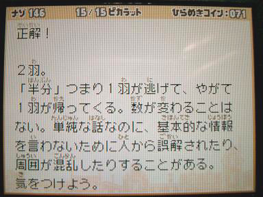 1作目をやってる時も思ってたんですが、ちょい残念なのは、このゲームでは簡単な問題は拍子抜けするぐらい簡単に解けるし、アレな問題は解いても茂木教授が言う「アハッ体験」どころかイラッ体験ばかりでモヤモヤするところです。