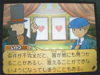 謎と言えば今やってるゲームはニンテンドーDS「レイトン教授と最後の時間旅行」なんですけどね。