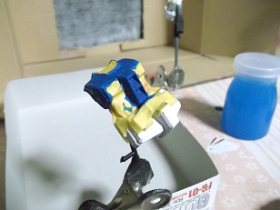 そんでメタルプライマーを塗りたくって中毒になりそうだったシャアザクも乾燥してきたので、早速ちょろちょろ筆塗り開始。