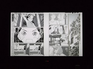 いくら32インチのテレビといえど、1mも離れて読めば文字が小さい漫画は読みにくいなと。4コマとか、写植されてないキャラの周りの書き文字とか。
