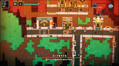 流れとしては、惑星に降り立ったらスープの材料の探索・工場の建設を行い、ライバル会社の妨害を排除しつつ、できたスープをどんどんロケットで打ち上げてシェア100%になったらステージクリアって感じっす。で、次の惑星へ。