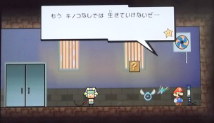 ハムスターの様に発電機を動かす労働に励む事になったマリオ。