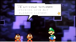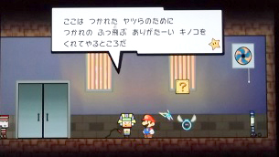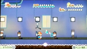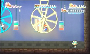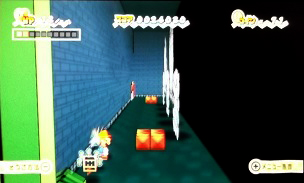 キャラクターがペラペラの紙状態なのが特徴ですが、このゲーム一番の売りは「次元ワザ」という、ステージを2Dから3Dに切り換える技があること。