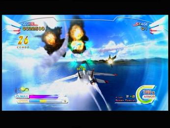 ゲージがたまれば、「クライマックスモード」と呼ばれるスローモーション&ロックオンカーソル拡大&ミサイル撃ち放題の特殊技が使えます。