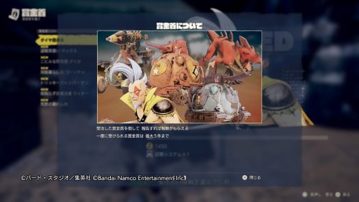 乗り物のパーツにレアリティがあってトレハン要素もあるし、クリア後もサブクエストが増えたり賞金首やヌシを探して戦ったりと、それなりに長く楽しめるゲームなのはいいですね。