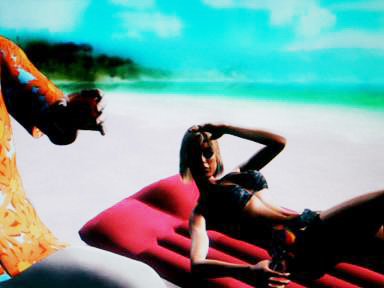 ストーリーの指令は以前紹介した仁王立ち水着ガールと陽気な中年ボーイから受けてるわけですが、指令を受けに行くと、仁王立ちガールは日光浴をしてました。